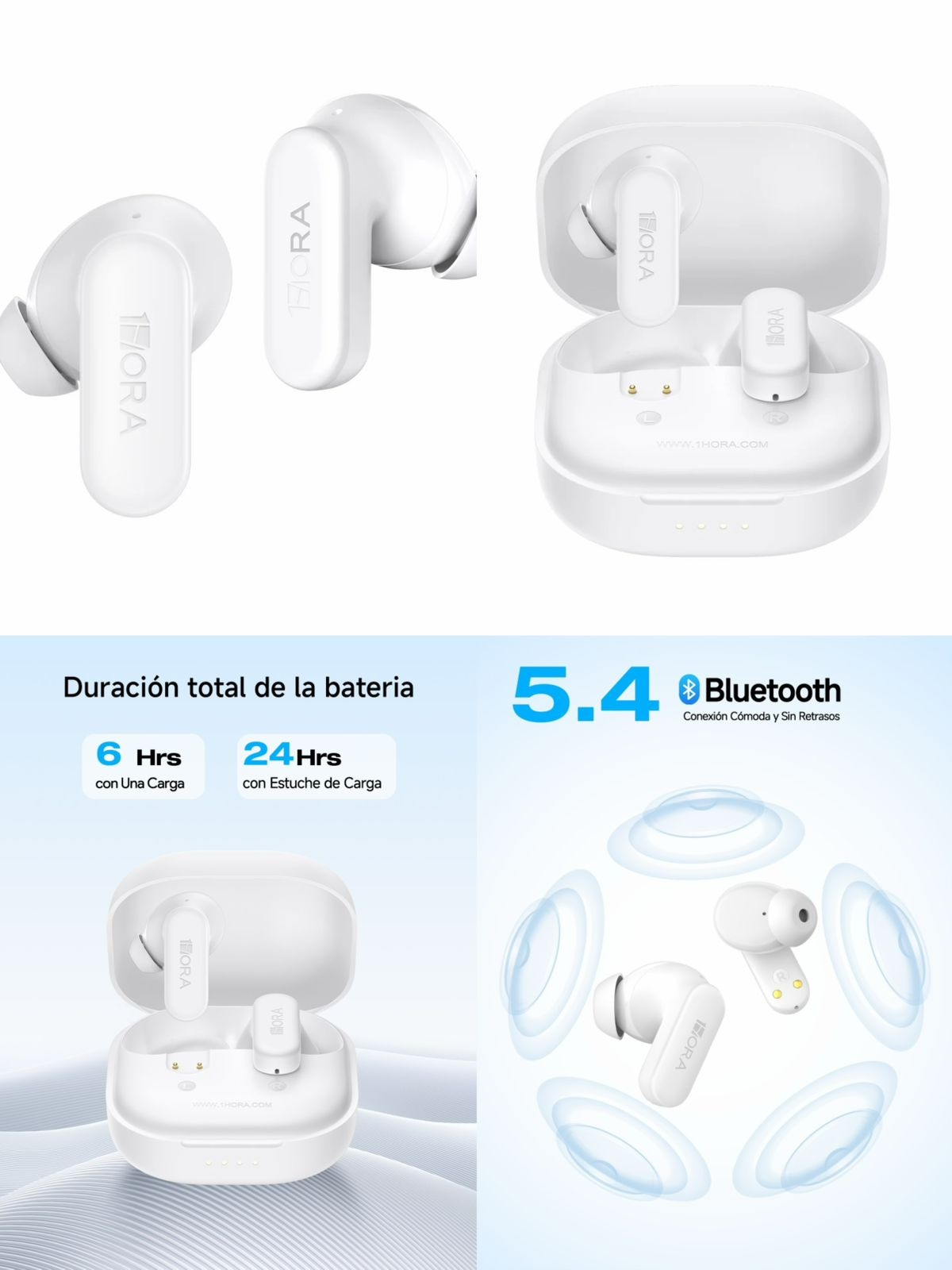 / Audífono Bluetooth 1HORA AUT214 Blanco